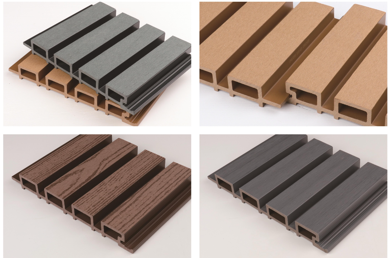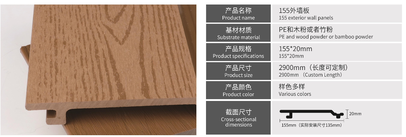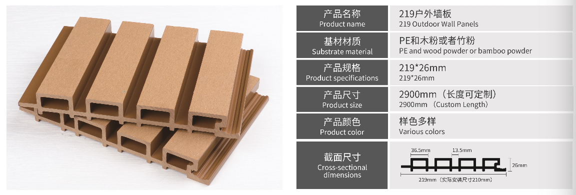 Los paneles de madera plástica para exteriores están fabricados con una mezcla de polietileno (PE) y fibras vegetales, conocidos como madera tecnológica o ecológica. Son ideales para revestimientos de paredes exteriores, cercas y pisosgracias a sus propiedades resistentes al desgaste, protección UV y alta durabilidad.