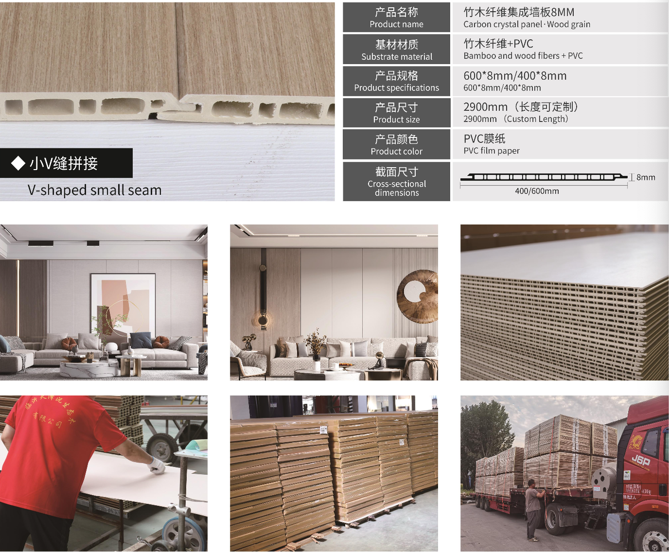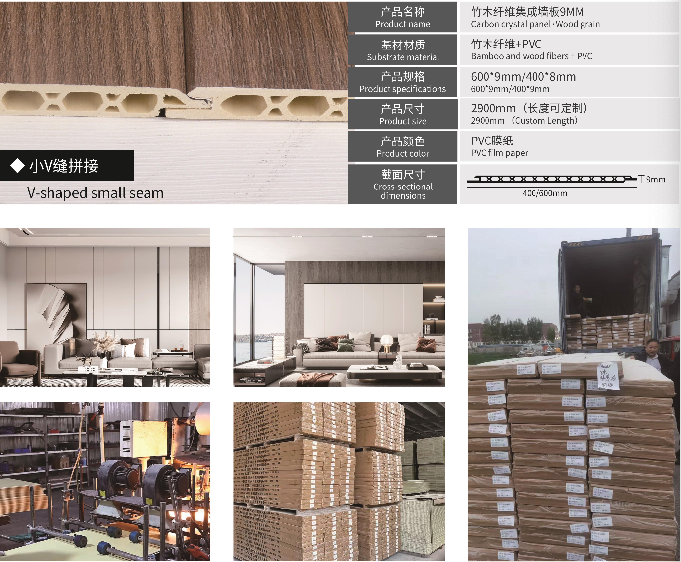 Nuestros paneles de cristal de carbono con veta de madera están fabricados con fibras de bambú, fibras de madera y PVC de alta resistencia, utilizando tecnología de extrusión avanzada. Este material ofrece durabilidad, ligereza y una instalación sencilla, siendo ideal para proyectos residenciales, comerciales y hoteleros.